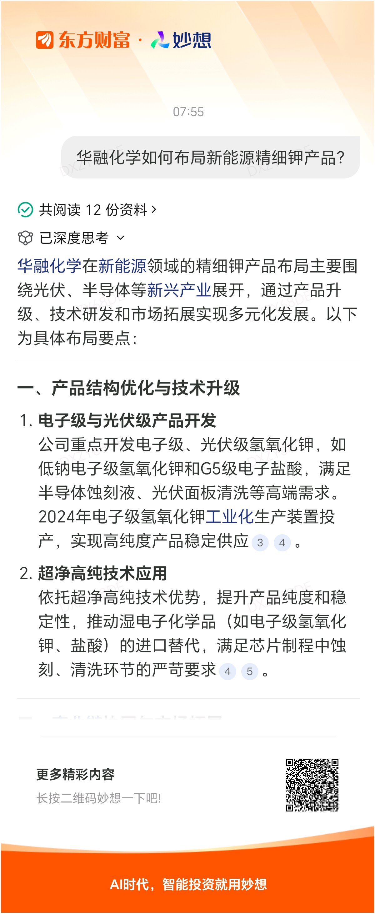 #@妙想,你怎么看?# 妙想一下:华融化学如何布局光伏发电新能源精细钾产品?