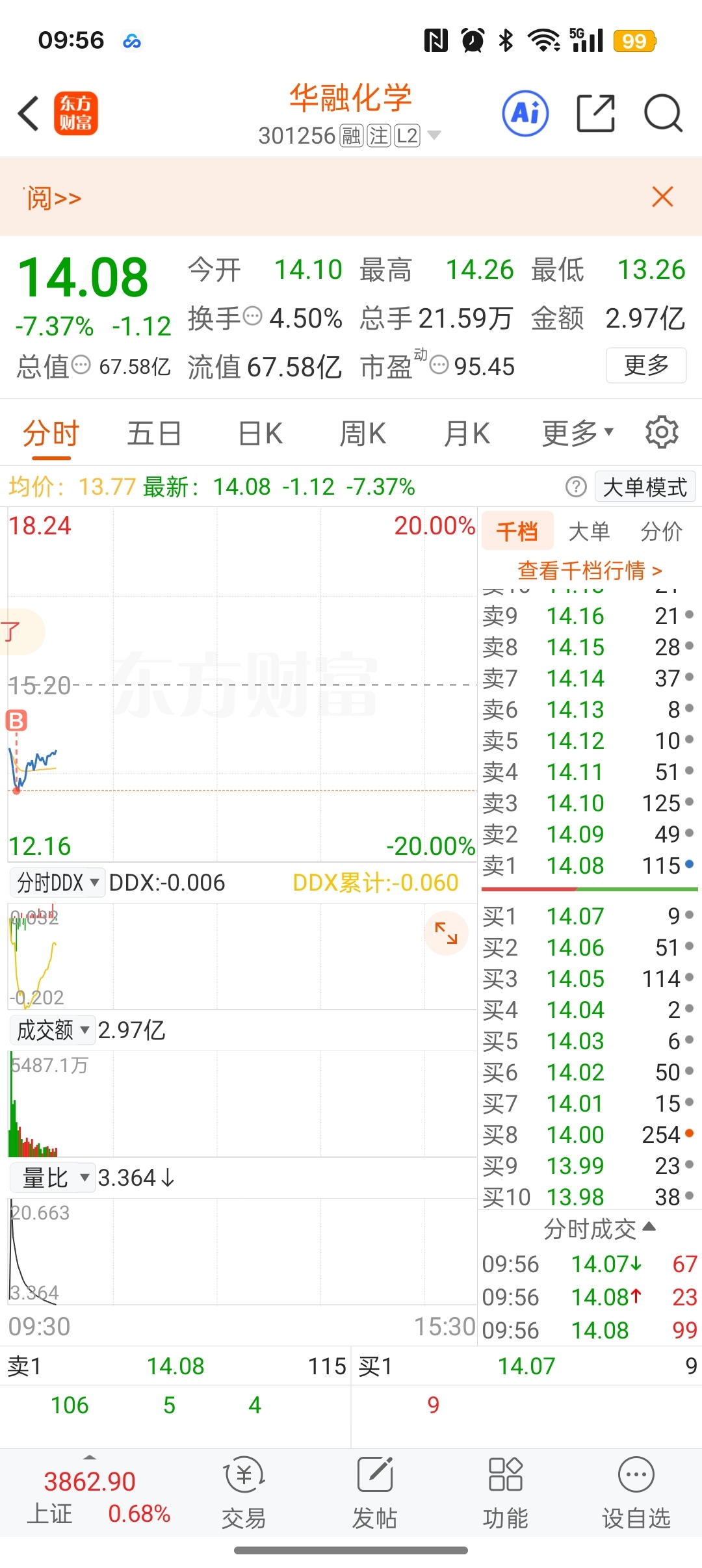 $华融化学(SZ301256)$ 买了2万块