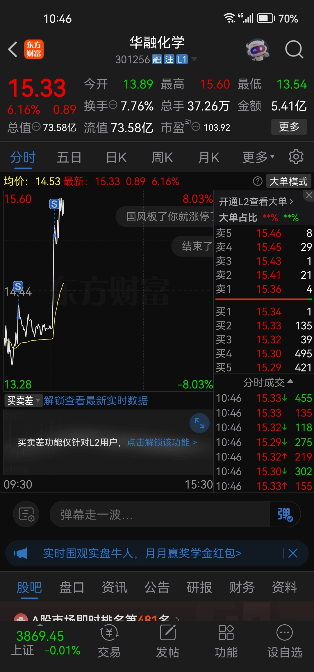 $华融化学(SZ301256)$ 来吧多拉点都卖给你哈哈哈