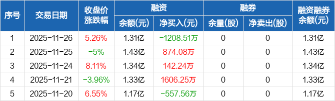 华融化学:融资净偿还1208.51万元,融资余额1.31亿元(11-26)