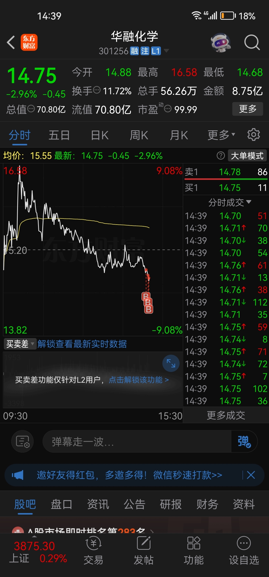 $华融化学(SZ301256)$ 砸就抢买进了哈哈