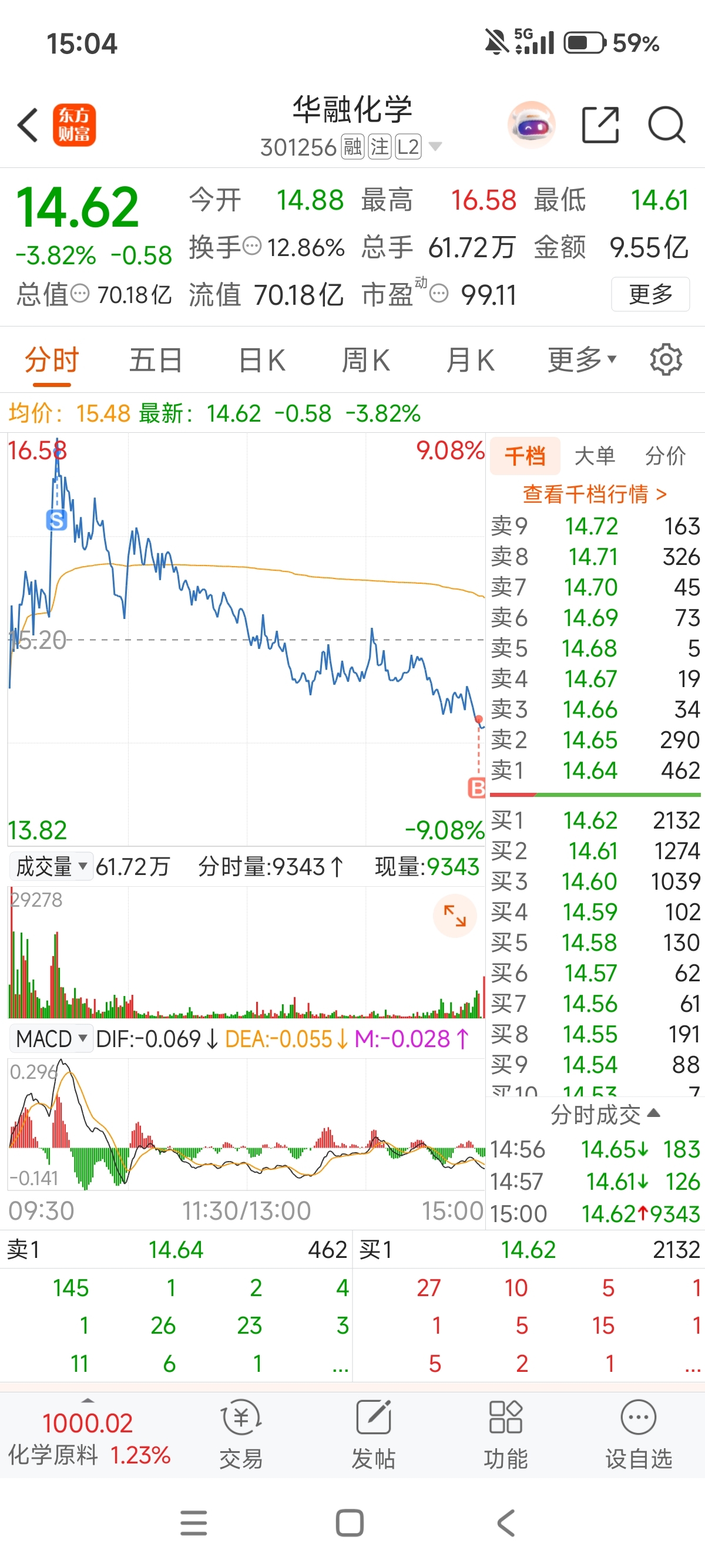 $华融化学(SZ301256)$ 接回来,明天开的不理想就再也不来了