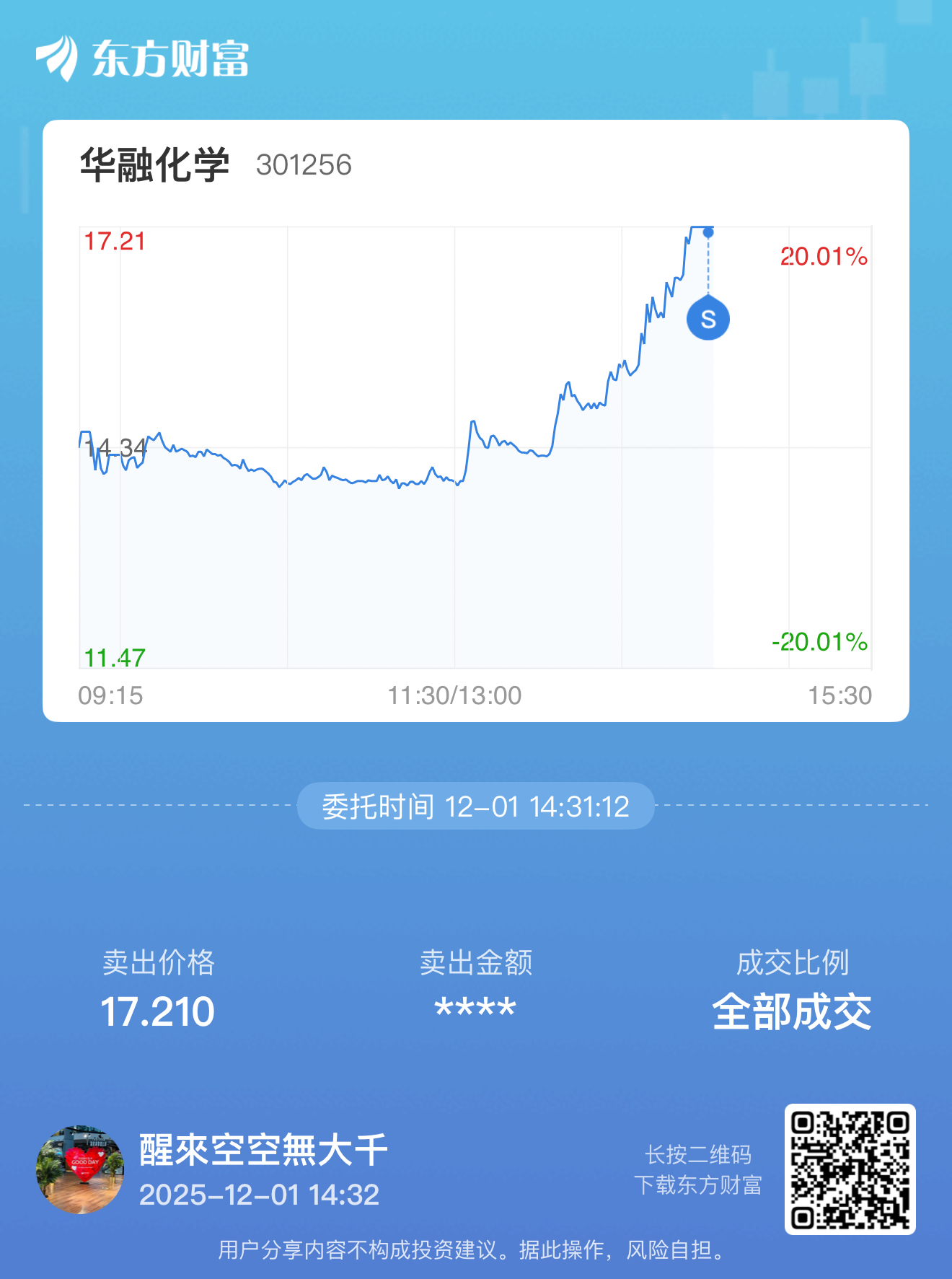 $华融化学(SZ301256)$ 重仓拿了半年一股没动,今天破前高了,走掉三分之一继续看戏。