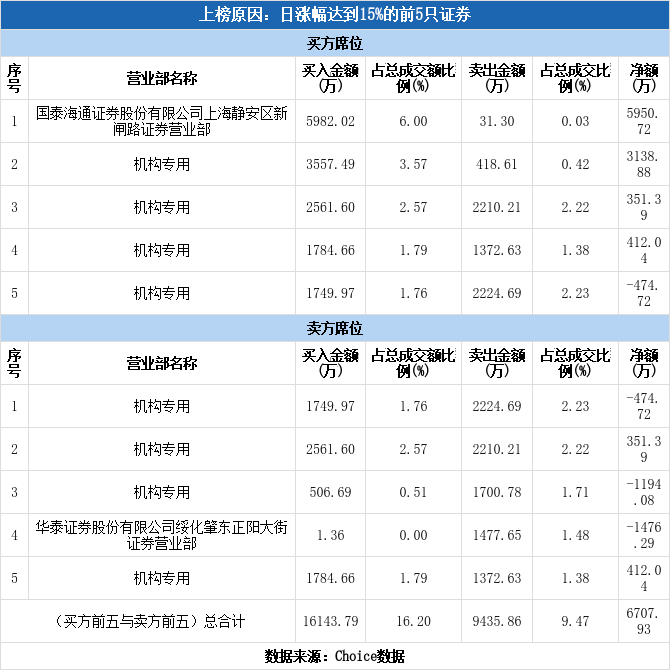 多主力现身龙虎榜,华融化学涨停(12-01)