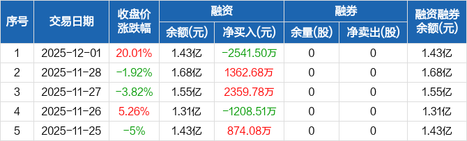 华融化学:融资净偿还2541.5万元,创近一年新高(12-01)