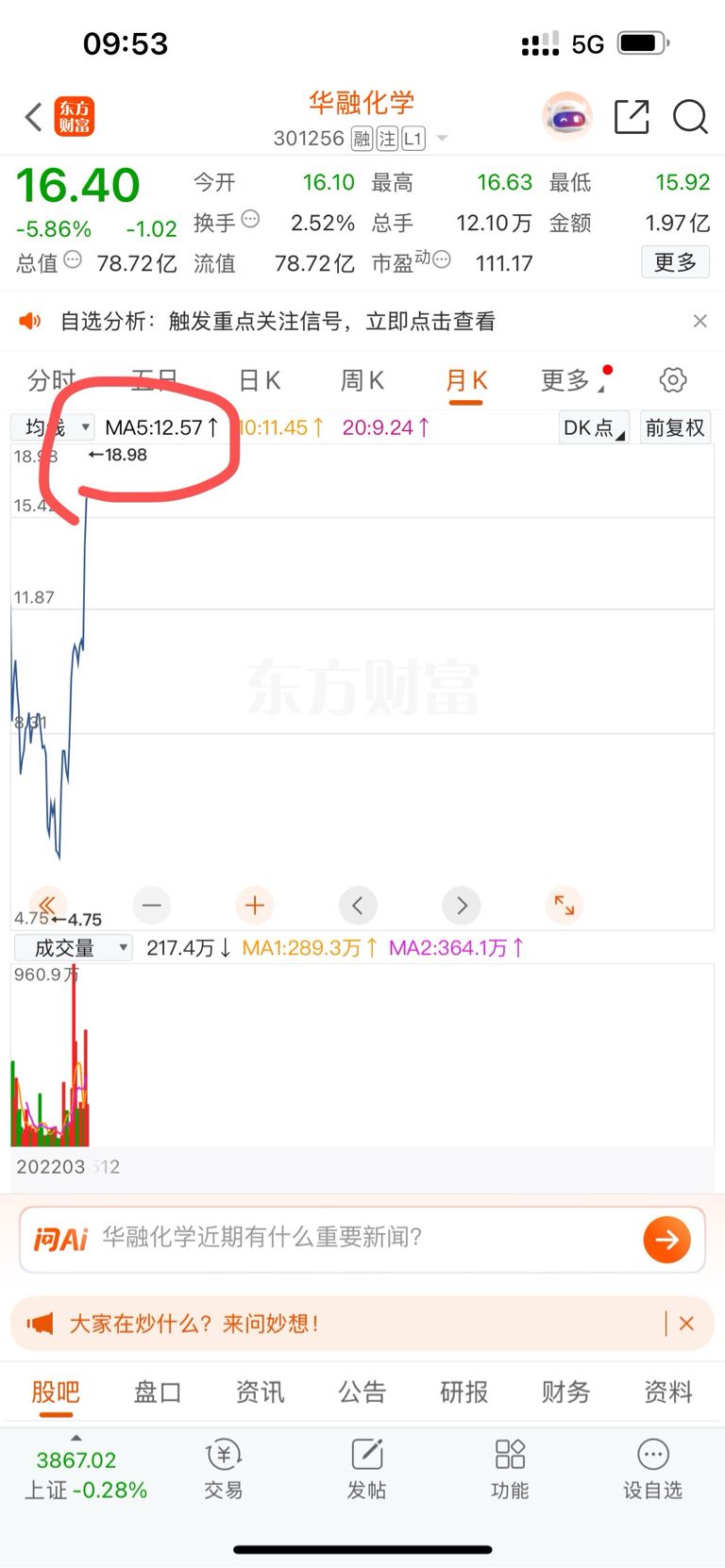 $华融化学(SZ301256)$ 对顶数字18.98出现,一看这成交量,太明显了,庄家集体出货到,大量散户接盘,最重要历史最高点出现,明天肯定低开低走,涨多必跌,看戏罢了