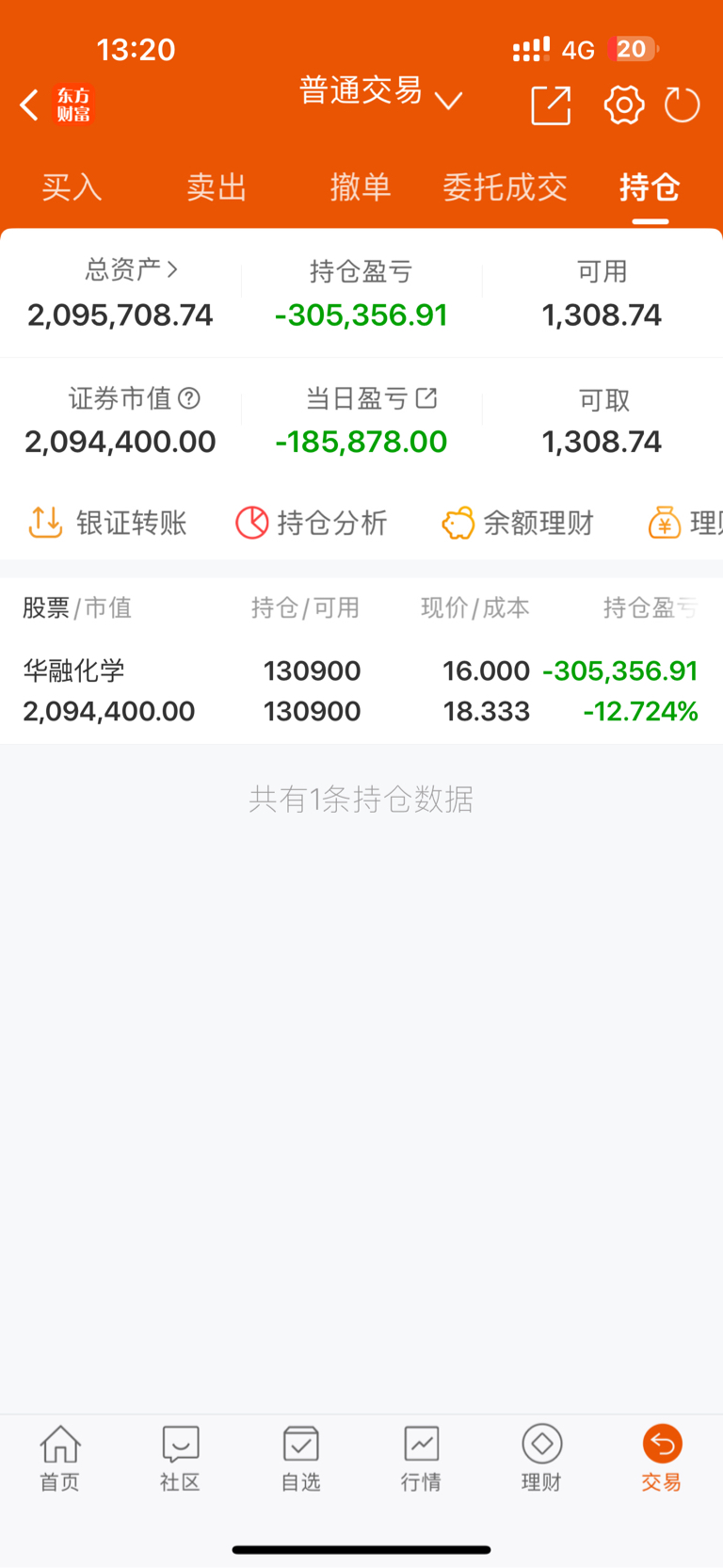 $华融化学(SZ301256)$ 股友们,今天损失惨重啊!