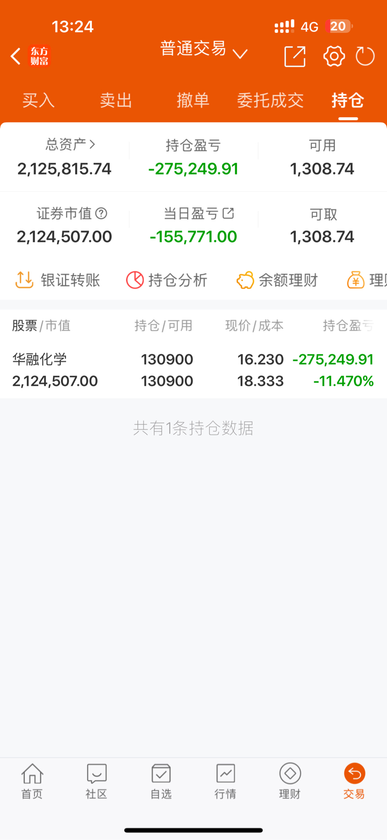 $华融化学(SZ301256)$ 股友们,损失惨重。坐等两点半主力上班了