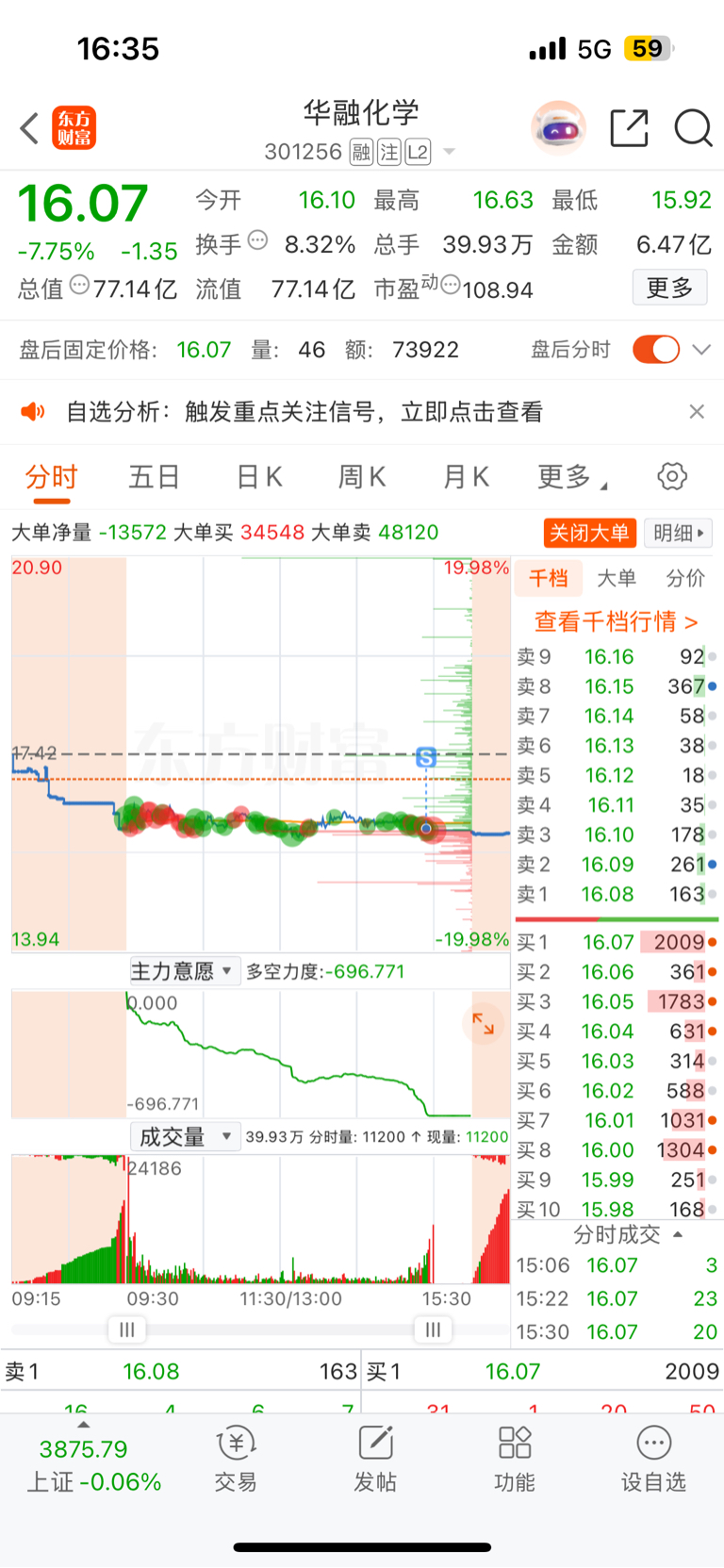 $华融化学(SZ301256)$ 股市实在是令人“敬畏”,你一割肉就拉升,你格局它一定是收盘全天最低价,忍不住收盘割肉,开盘就想割,进联建光电的,那时水下三个点