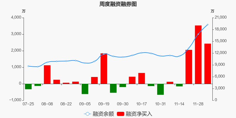 华融化学本周(2025/12/01-2025/12/05)累计涨幅达13.39%,截至12月5日最新股价报收16.26元。从增量上来看,12月1日至12月4日融资买入交易规模4.52亿元,融资偿还规模4.28亿元,期内融资净买入2430.8万元。从存量上来看,截止12月7日,华融化学融资融券余额1.93亿元,其中融资余额规模1.93亿元,融券余额规模0元。