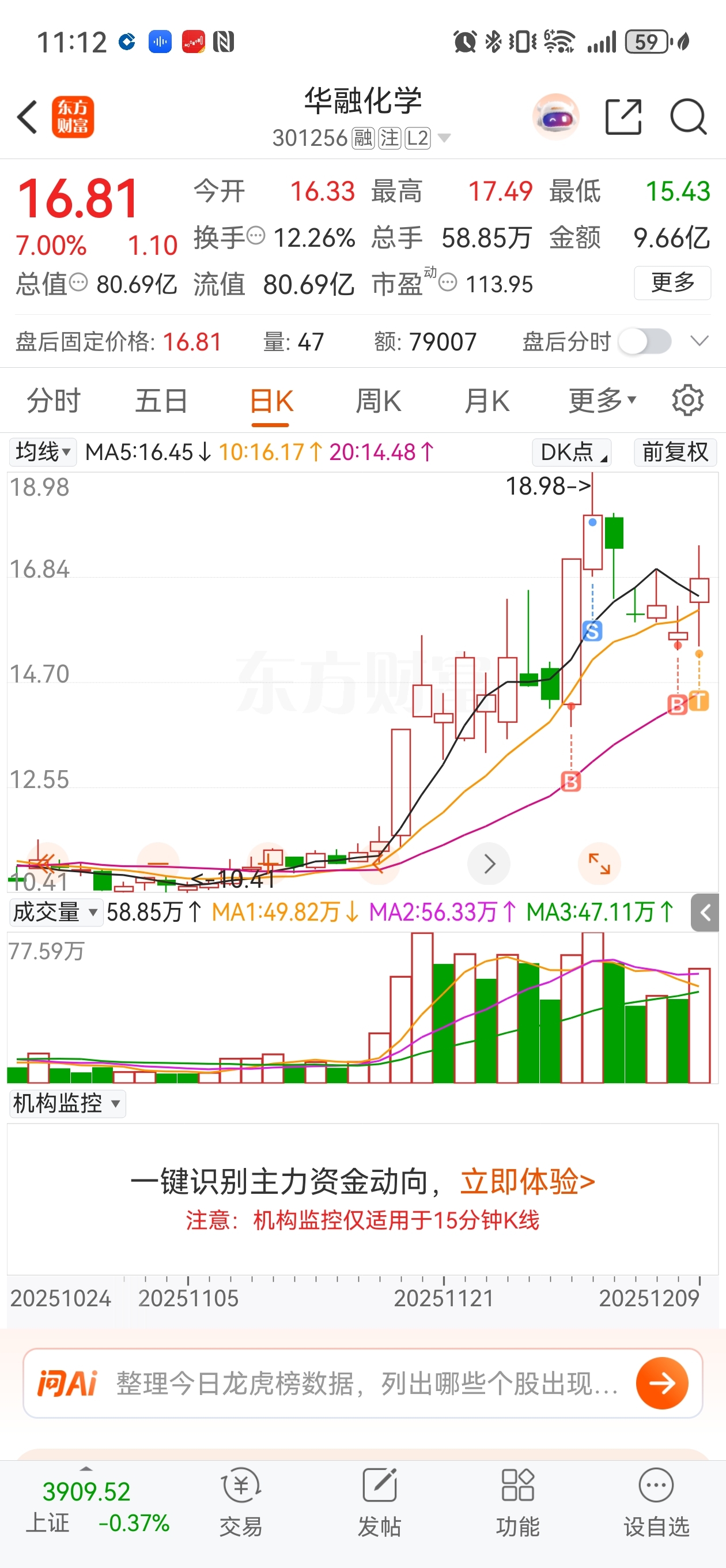$华融化学(SZ301256)$ 本月大幅收益华融化学功不可没
