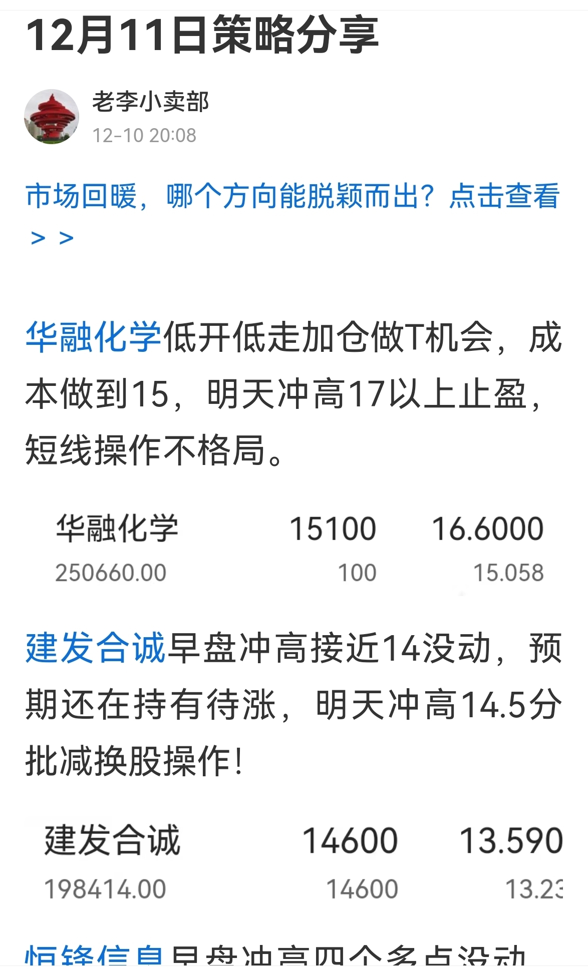 $华融化学(SZ301256)$ 尾盘拉升符合预期明天冲高先减仓,详见11日策略分享