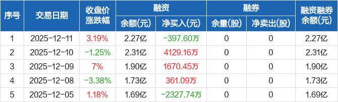 华融化学:融资净偿还397.6万元,融资余额2.27亿元(12-11)