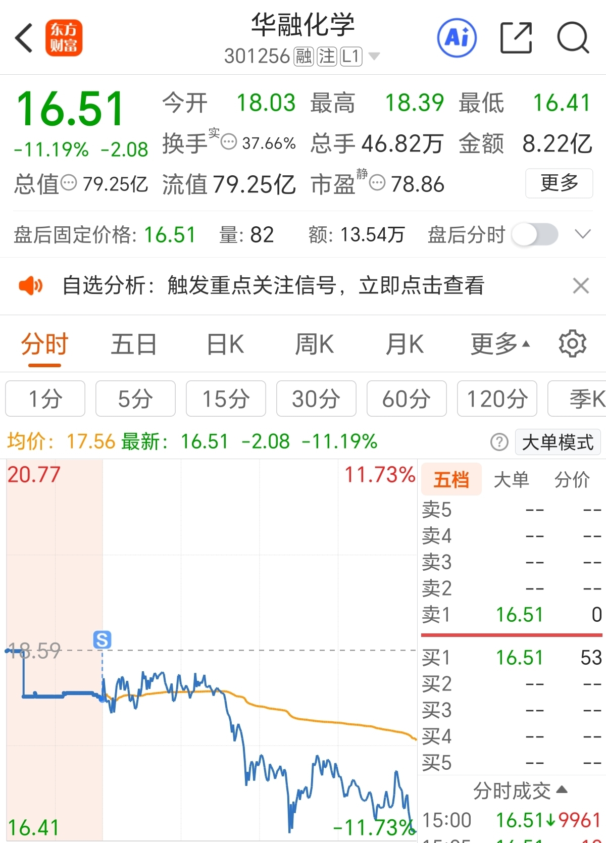 $华融化学(SZ301256)$ 昨天拉尾盘就知道今天坏了,不是腰鼓的情况下,基本上百分百准确,今天盘都没看,昨晚就挂好跌停卖了,佩服大A