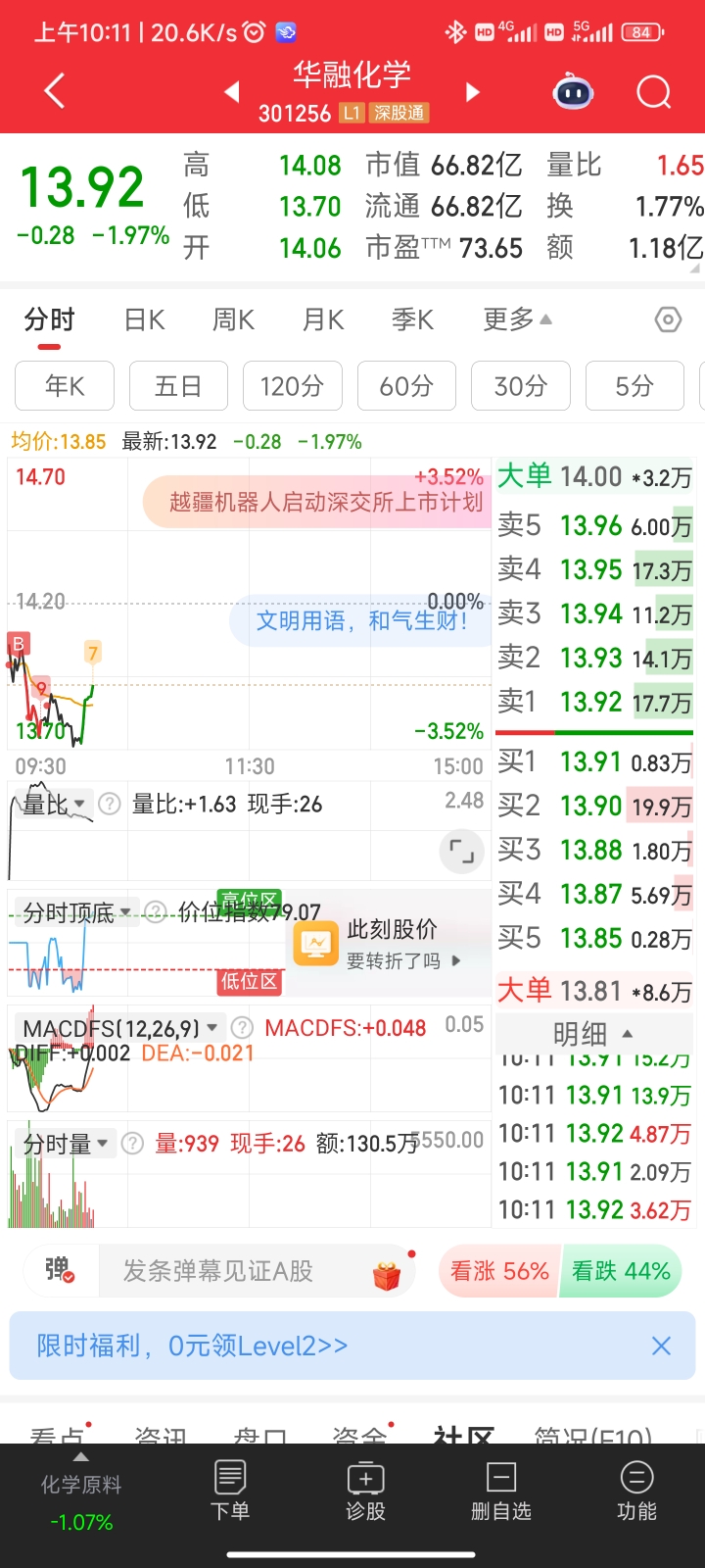 $华融化学(SZ301256)$ 低点差不多彻底出来了,在跌的话就彻底走坏了,这周还有一个交易日,看下下个月吧,感觉应该彻底走反弹了,先看到17.5吧