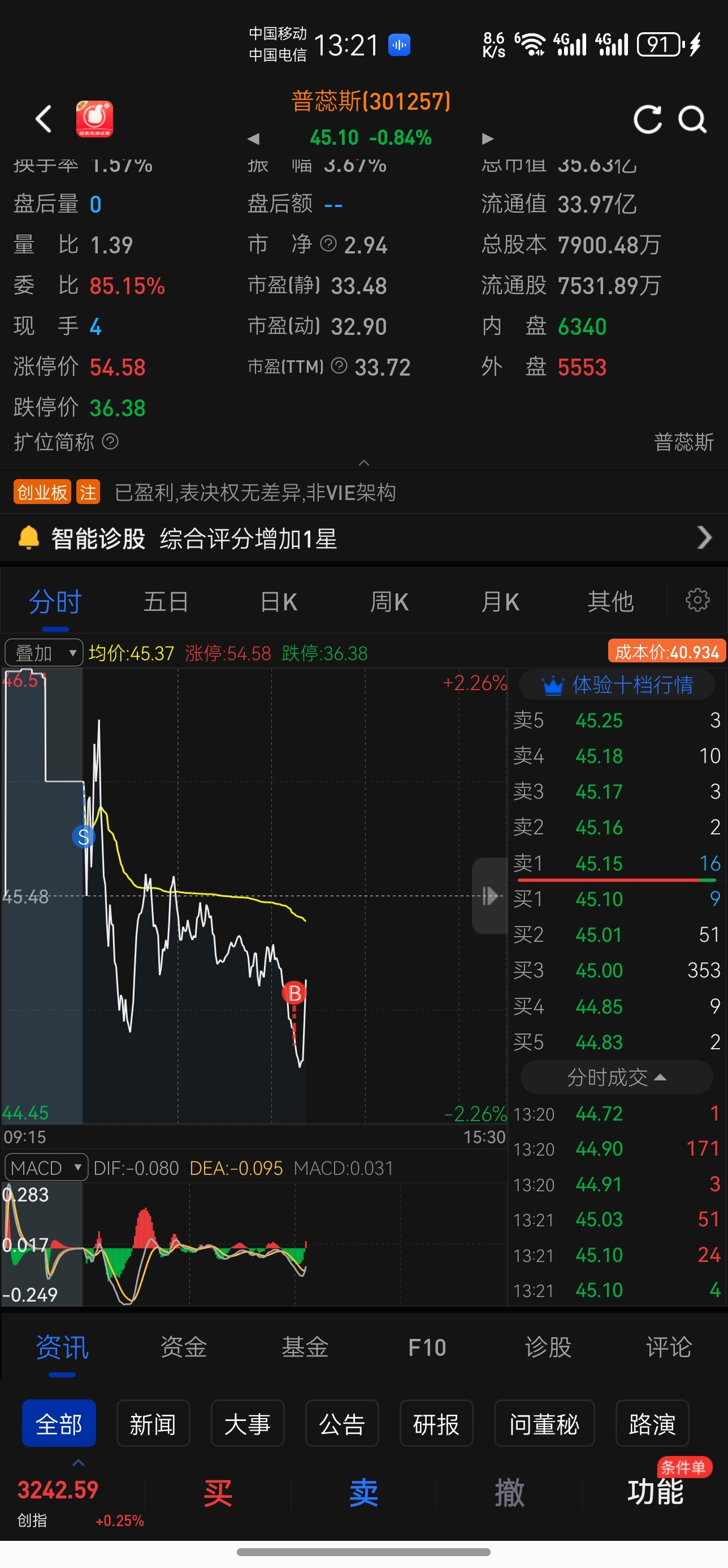$普蕊斯(SZ301257)$ 这个东东今天解禁37.87万股,另外,加上还处于减持期能有现在走势就可以了!是做T的机会!