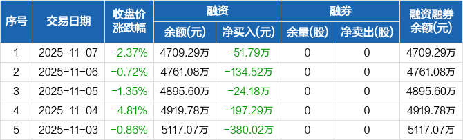 普蕊斯:融资余额4709.29万元,创近一年新低(11-07)