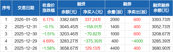 普蕊斯:融资净买入337.24万元,融资余额3382.68万元(01-05)