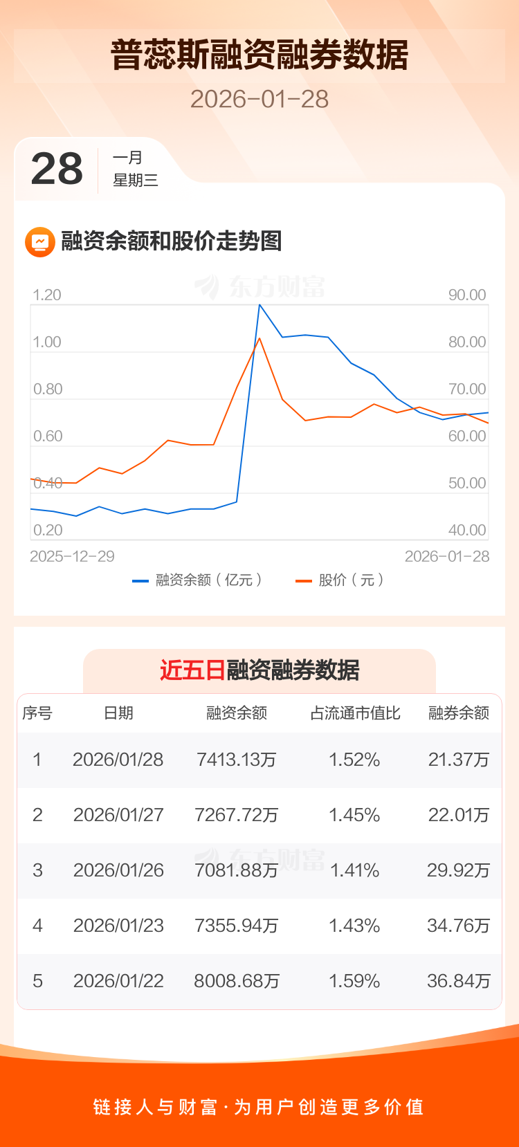 交易所最新数据显示,普蕊斯于2026年1月28日获融资买入929.46万元,融资偿还784.05万元,当日融资净买入145.41万元。目前,该股融资余额7413.13万,占流通市值比例为1.52%。