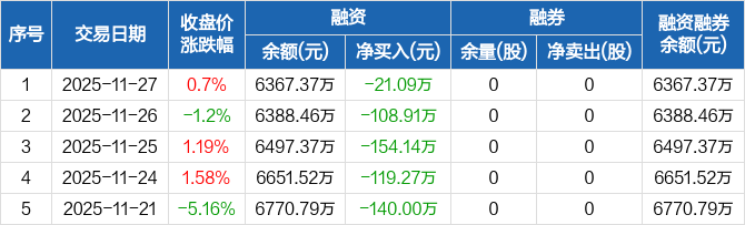 富士莱:连续8日融资净偿还累计824.61万元(11-27)
