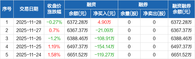富士莱:融资净买入4.9万元,融资余额6372.28万元(11-28)