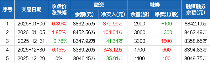富士莱:融资净买入379.99万元,融资余额8832.55万元(01-06)