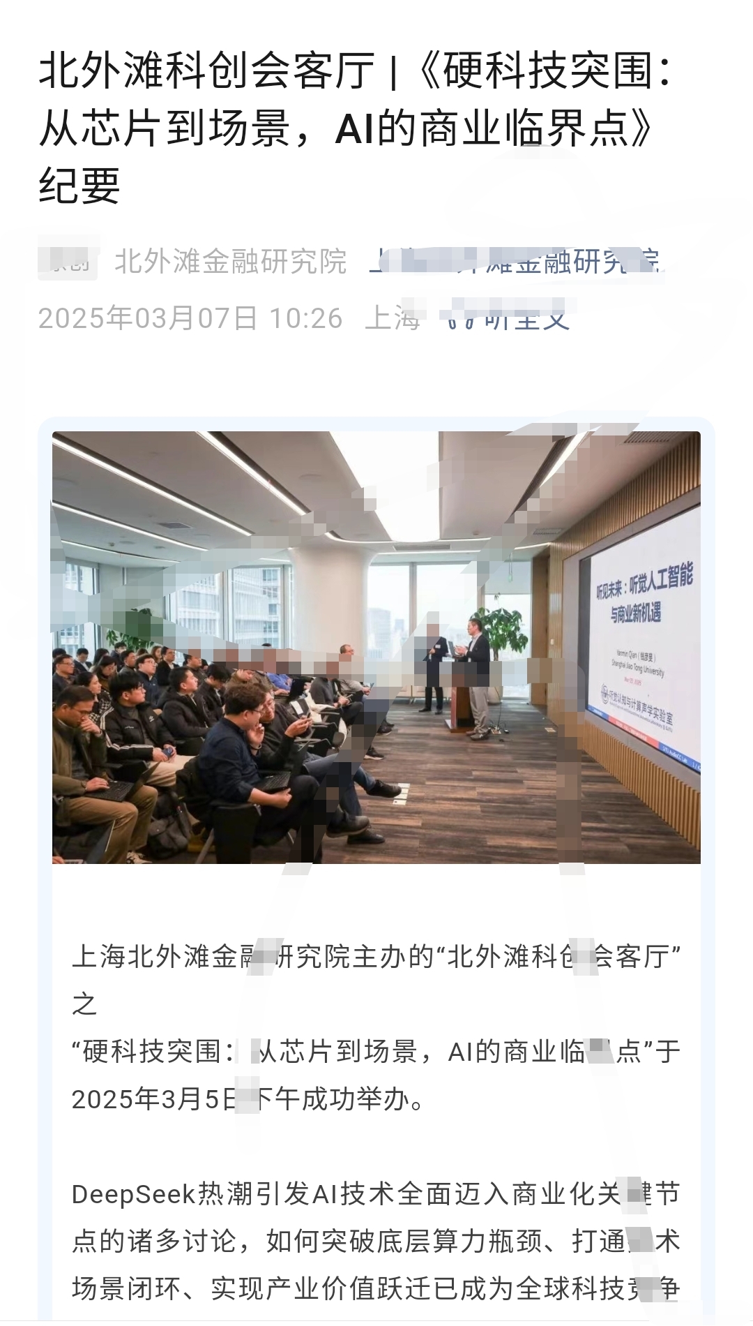 !坚定信念!中昊CEO杨的北外滩科创会演讲报道来了。再次公开说25年要出对标英伟