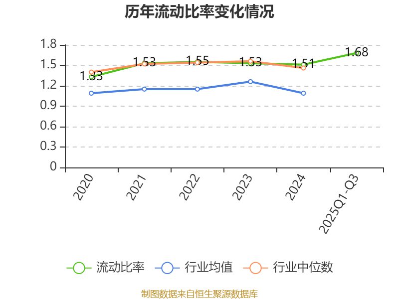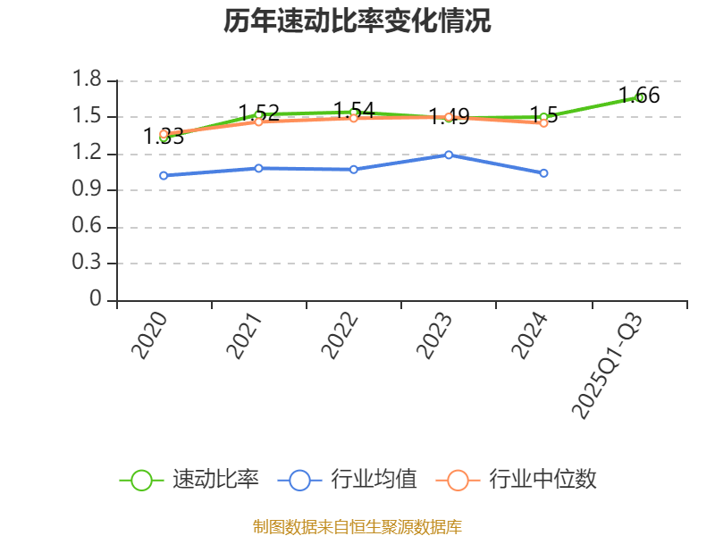 2025年前三季度,公司流动比率为1.68,速动比率为1.66。
