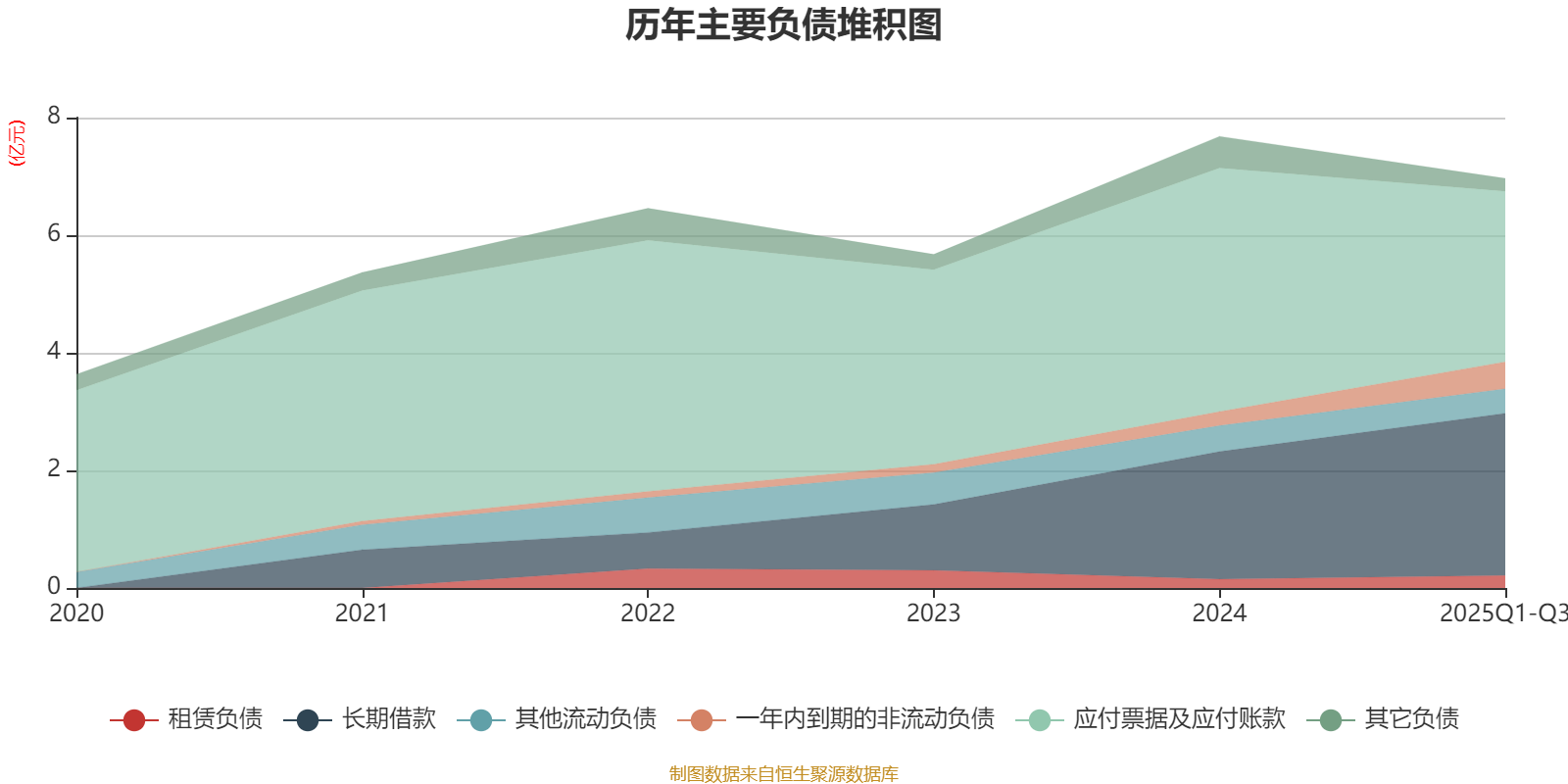 负债重大变化方面,截至2025年三季度末,公司应付票据及应付账款较上年末减少30.06%,占公司总资产比重下降7.23个百分点;长期借款较上年末增加27.06%,占公司总资产比重上升3.8个百分点;一年内到期的非流动负债较上年末增加91.9%,占公司总资产比重上升1.37个百分点;短期借款较上年末减少100%,占公司总资产比重下降0.76个百分点。