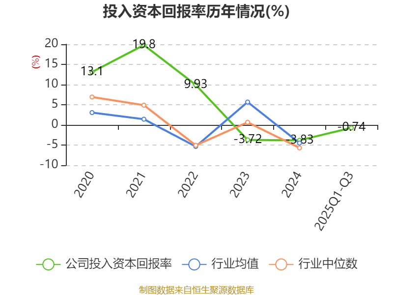 盈利能力方面, 2025年前三季度公司加权平均净资产收益率为-0.89%,同比上升3.06个百分点。公司2025年前三季度投入资本回报率为-0.74%,较上年同期上升3.16个百分点。