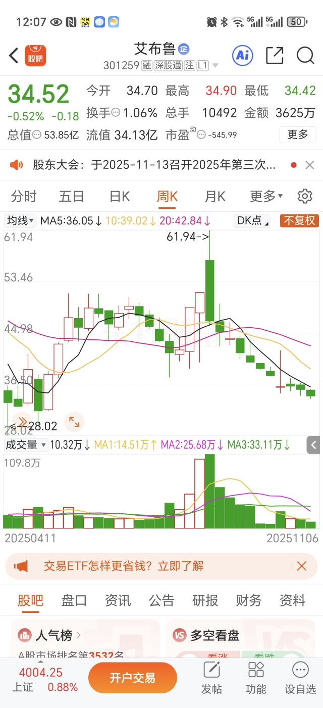 $艾布鲁(SZ301259)$ 牛!艾布鲁竟然周线11连跌,跌无止境…