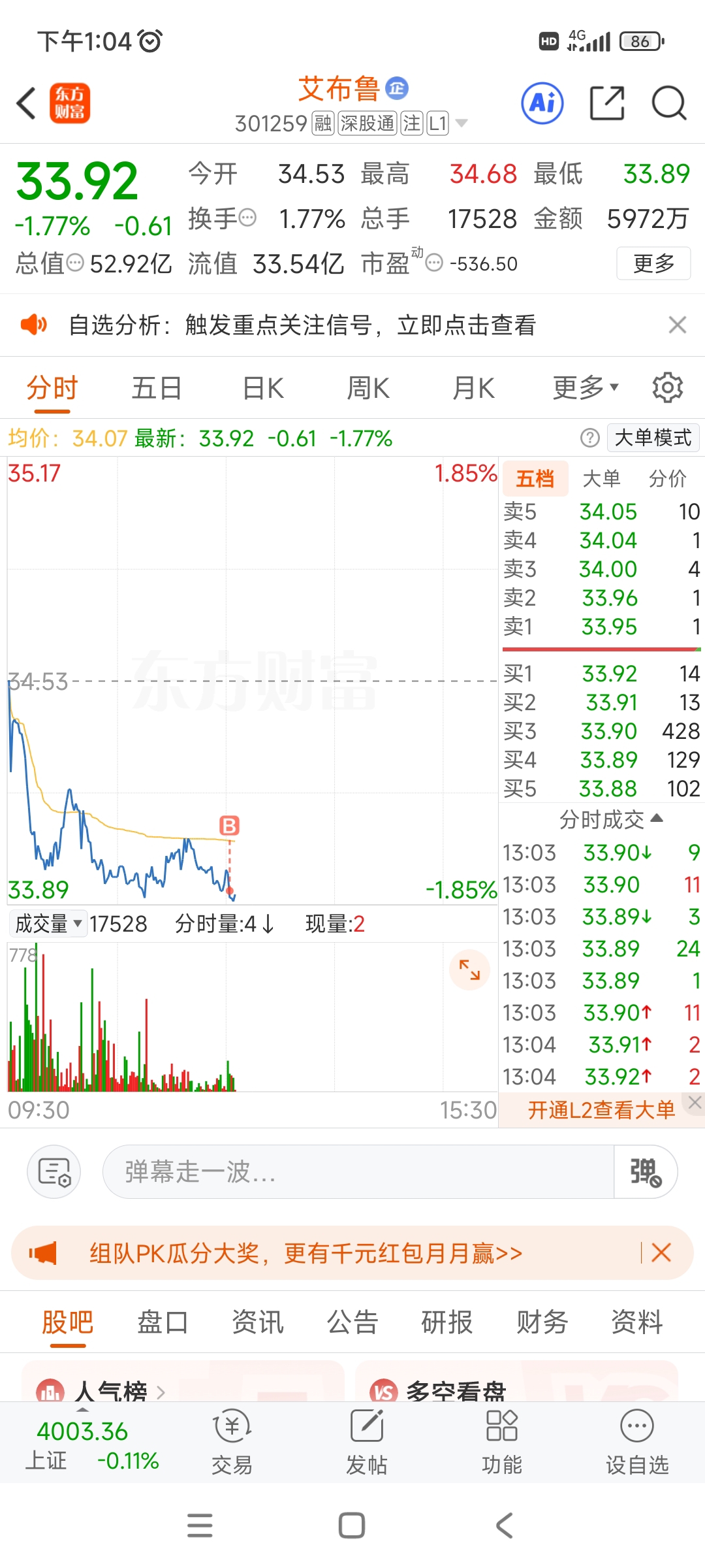 $艾布鲁(SZ301259)$ 周三34.78走了,今天33.93回来了,不为别的,两个字:不服