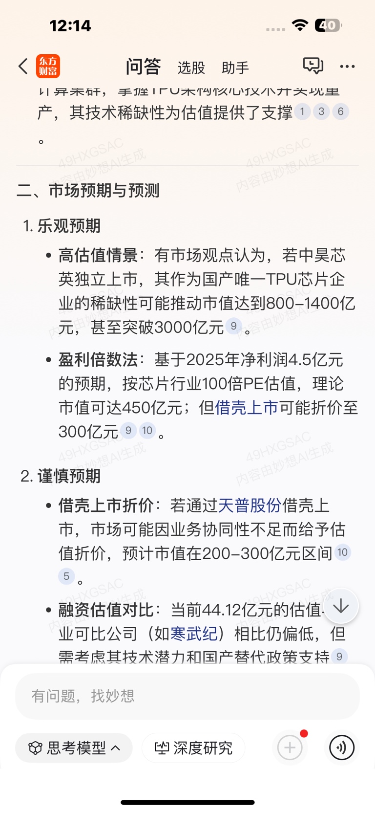 $艾布鲁(SZ301259)$ @妙想 中昊芯英上市后的估值多少?