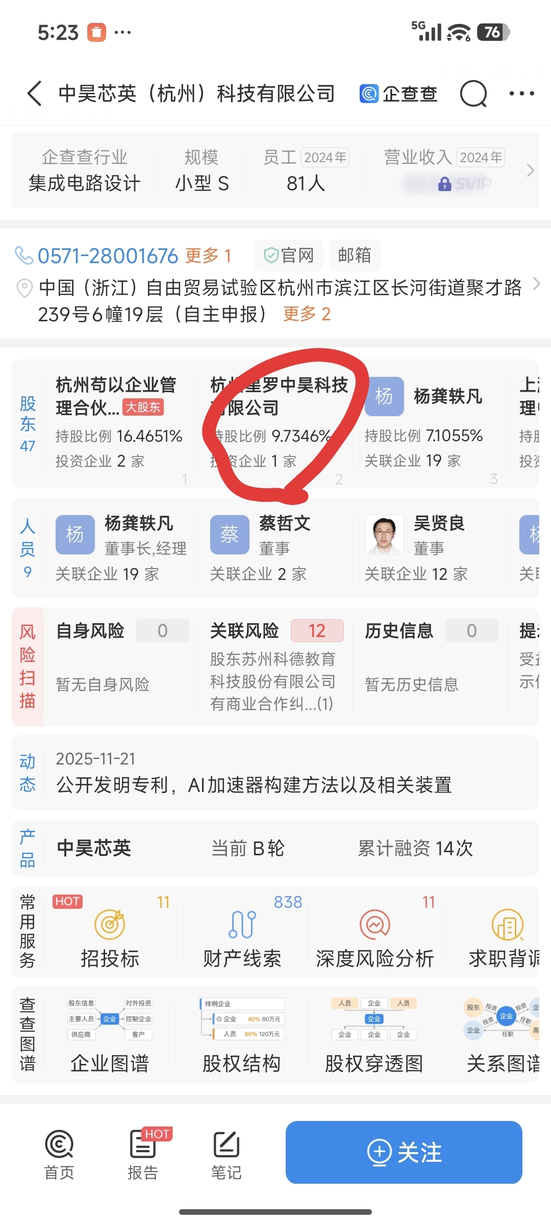 持有中昊芯英的比例高达9.7%,大家看仔细了