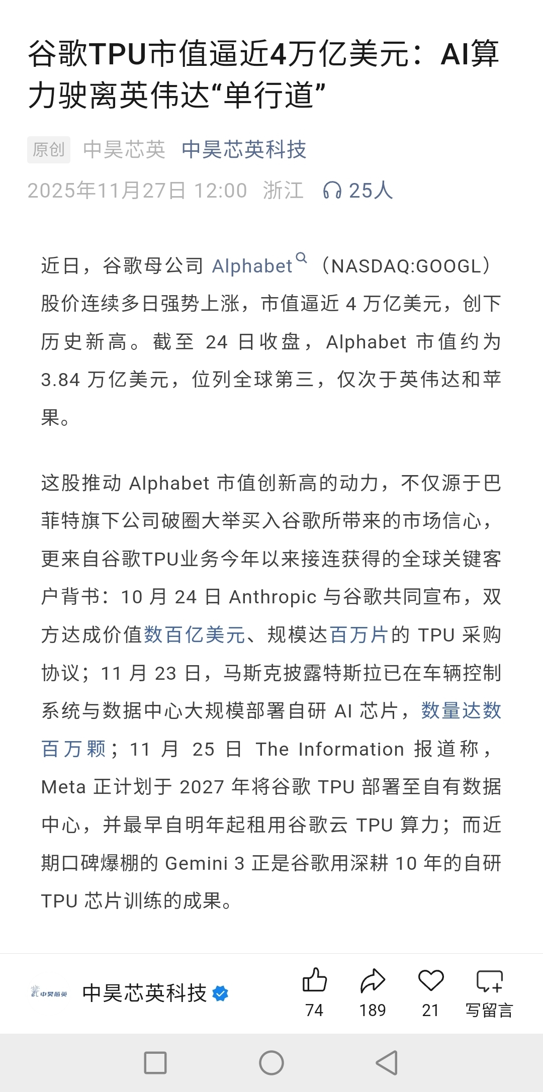 $艾布鲁(SZ301259)$ $科德教育(SZ300192)$ $天普股份(SH605255)$ 中昊芯英官方公众号新发文。借近期谷歌TPU的强势消息大力宣传TPU及刹那芯片。