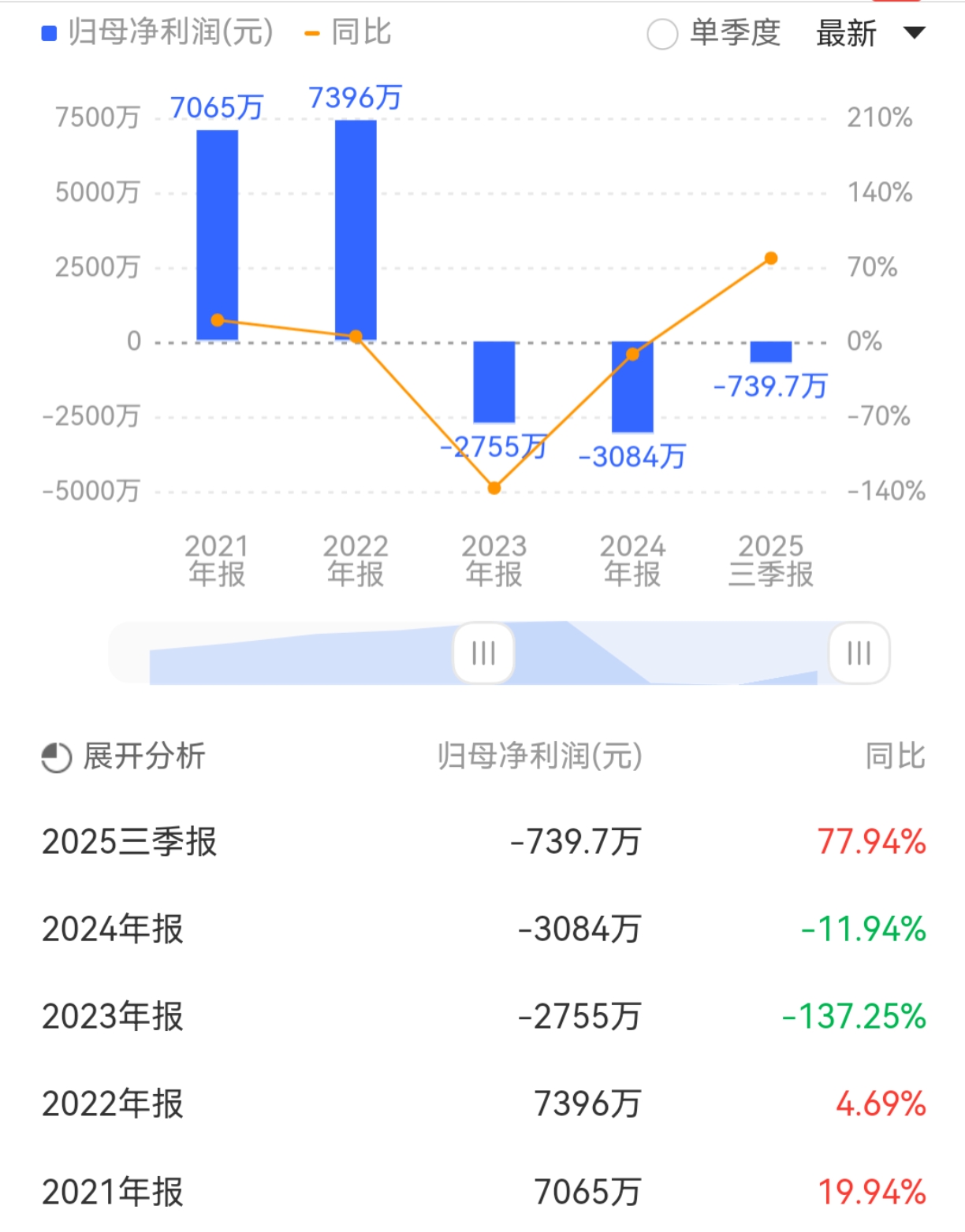 2025年前三季度,公司营业收入为1.97亿元,同比增长74.38%;归母净利润为-739.73万元,同比增长77.94%;扣非归母净利润为-1069.37万元,同比增长69.41%。