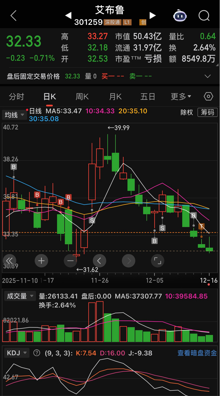 $艾布鲁(SZ301259)$ 不融券,不加杠杆。只看多。跌了就买,涨了就卖。#收盘点评#