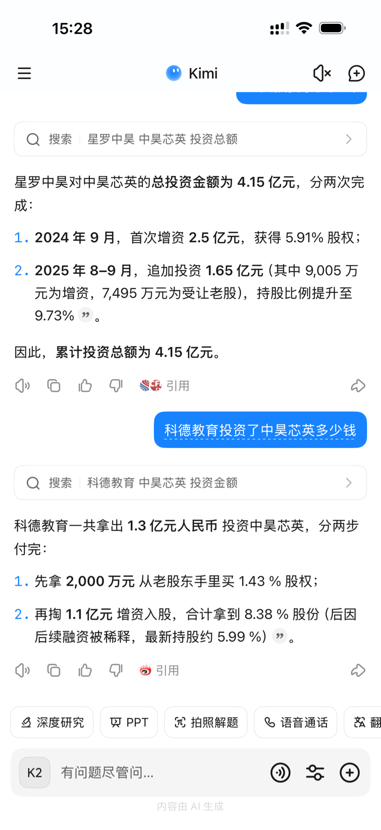 $艾布鲁(SZ301259)$ 别再议论科德教育持股比艾布鲁多了,艾布鲁投了 4.15 亿,科德教育投了 1.3 亿,谁多谁少不是一目了然吗?
