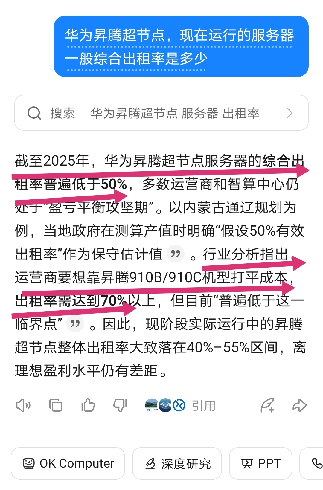 $艾布鲁(SZ301259)$ $科德教育(SZ300192)$ $天普股份(SH605255)$ 周五盘后特大信息第二贴(!算力出租率!)刚艾布鲁公告年报审计没事了,但展示出特别重大信息。其去年底1.65亿购中昊芯英刹那TPU智算中心,仅三个季度盈利4千万,出租率超80%!大家看第二图,昇腾低效不能盈利,越建越赔!现在中昊是唯一公告这么高出租率的国产芯片。国内英伟达H100一般也称80%