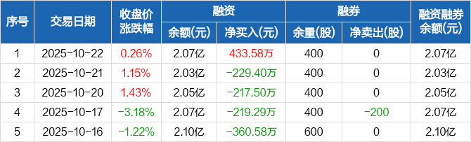 格力博:融资净买入433.58万元,融资余额2.07亿元(10-22)