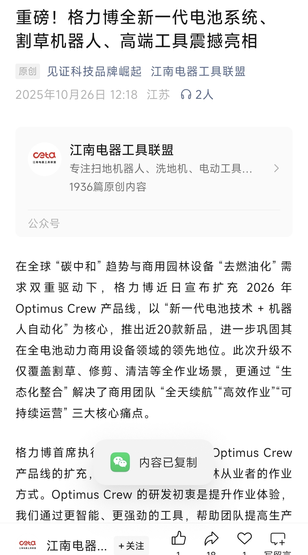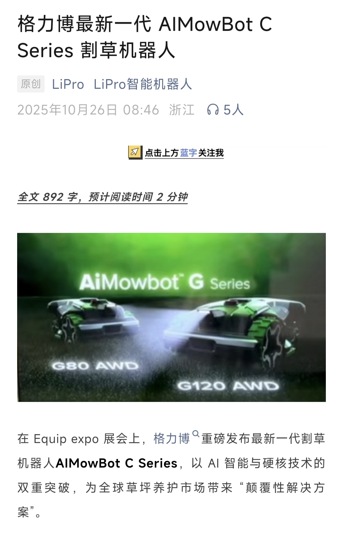 格力博最新一代AIMowBotCSeries割草机器人。——格力博全新一代电池系