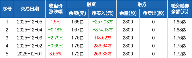 格力博:融资净偿还257.93万元,融资余额1.65亿元(12-05)