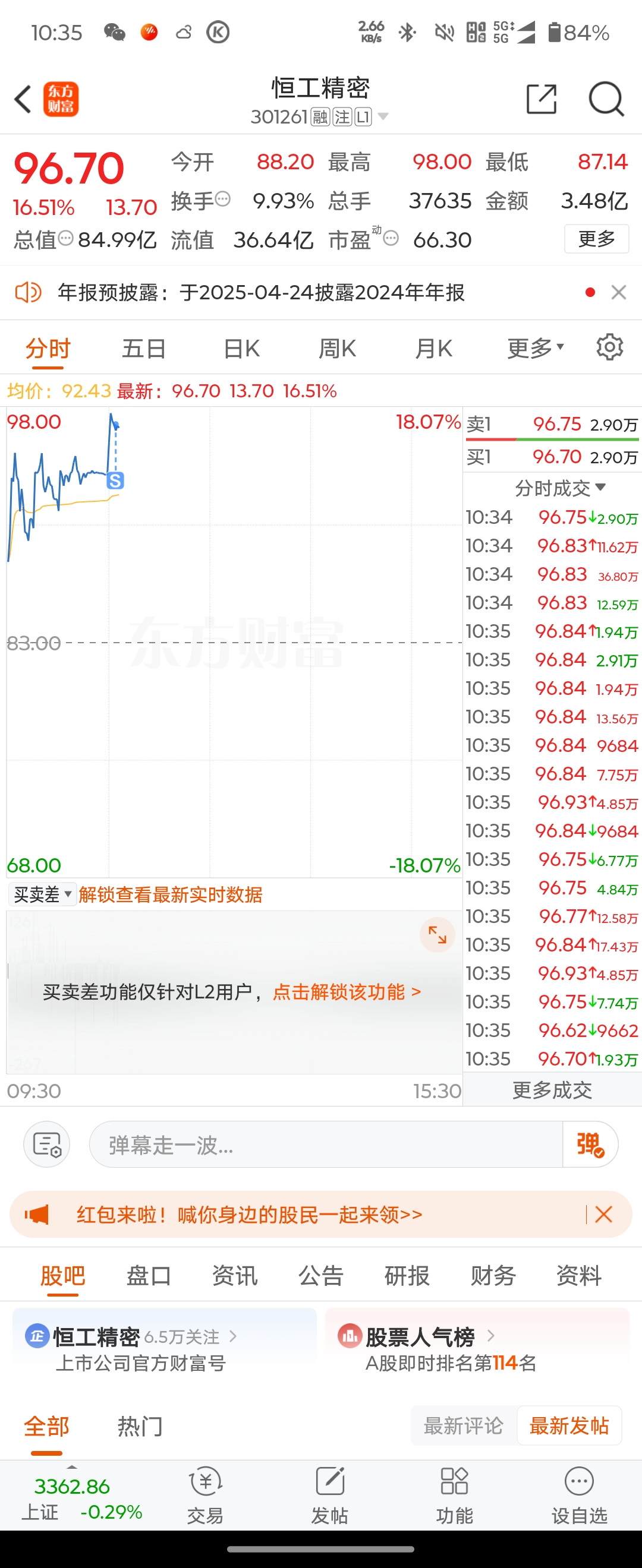 温馨提示: 1.根据《证券法》规定,禁止编造、传播虚假信息或者误导性信息,扰乱证券市场;2.用户在本社区发表的所有资料、言论等仅代表个人观点,与本网站立场无关,不对您构成任何投资建议。用户应基于自己的独立判断,自行决定证券投资并承担相应风险。《东方财富社区管理规定》