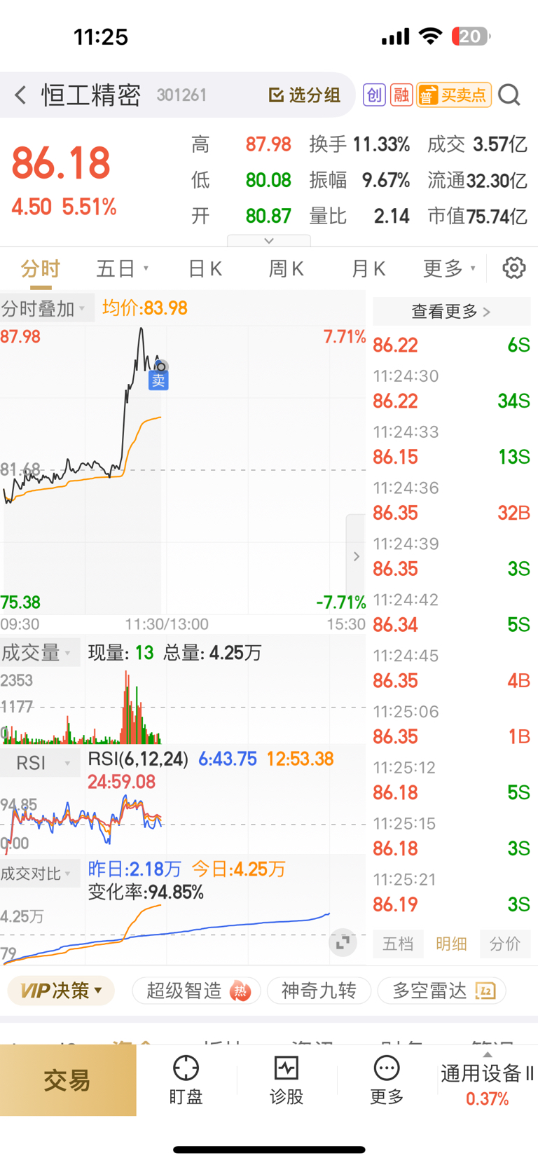 $恒工精密(SZ301261)$ 虽然没有卖到最高点也知足了感谢主力