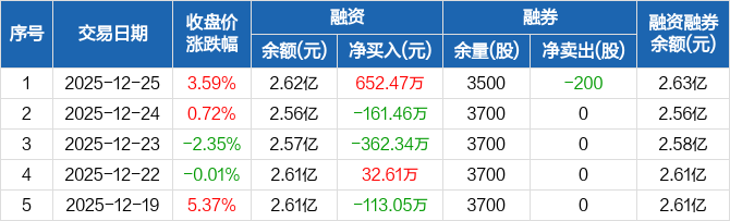 恒工精密:融资净买入652.47万元,融资余额2.62亿元(12-25)