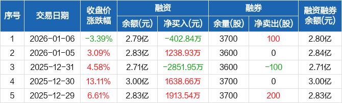 恒工精密:融资净偿还402.84万元,融资余额2.79亿元(01-06)