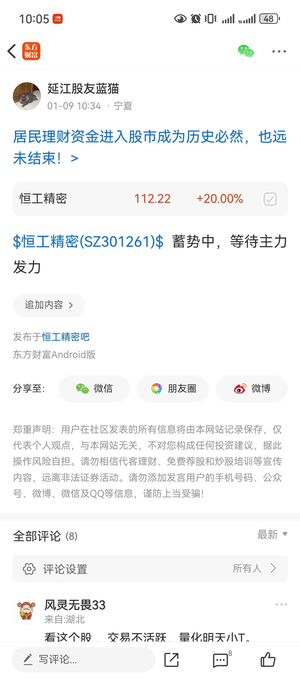 温馨提示: 1.根据《证券法》规定,禁止编造、传播虚假信息或者误导性信息,扰乱证券市场;2.用户在本社区发表的所有资料、言论等仅代表个人观点,与本网站立场无关,不对您构成任何投资建议。用户应基于自己的独立判断,自行决定证券投资并承担相应风险。《东方财富社区管理规定》