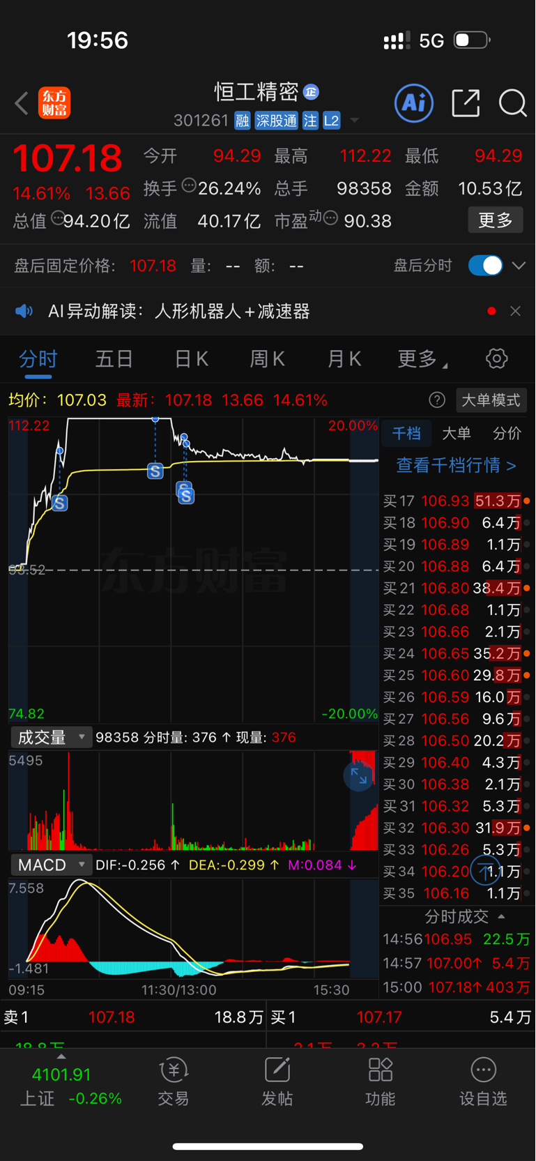 $恒工精密(SZ301261)$ 第三次回本,今天终于卖掉了,每次回本又跌回20多点,又回本,又跌回去,这次终于挣钱卖了