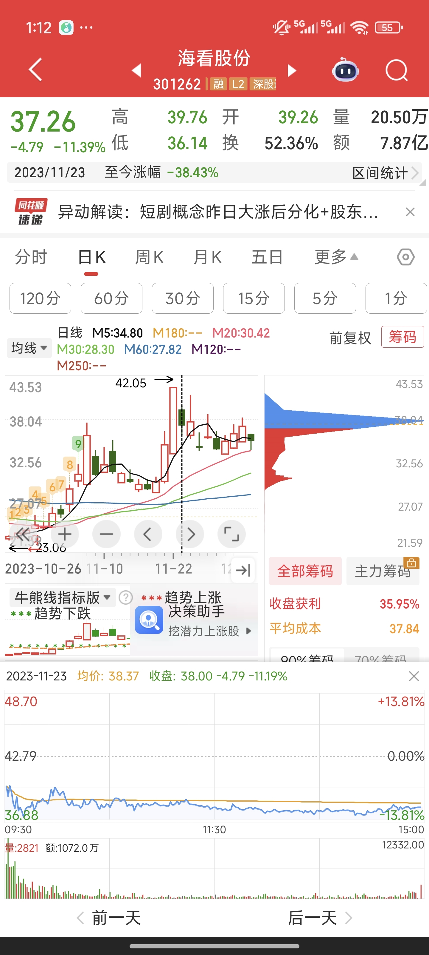$海看股份(SZ301262)$ 参考这一天优势,第三天反弹