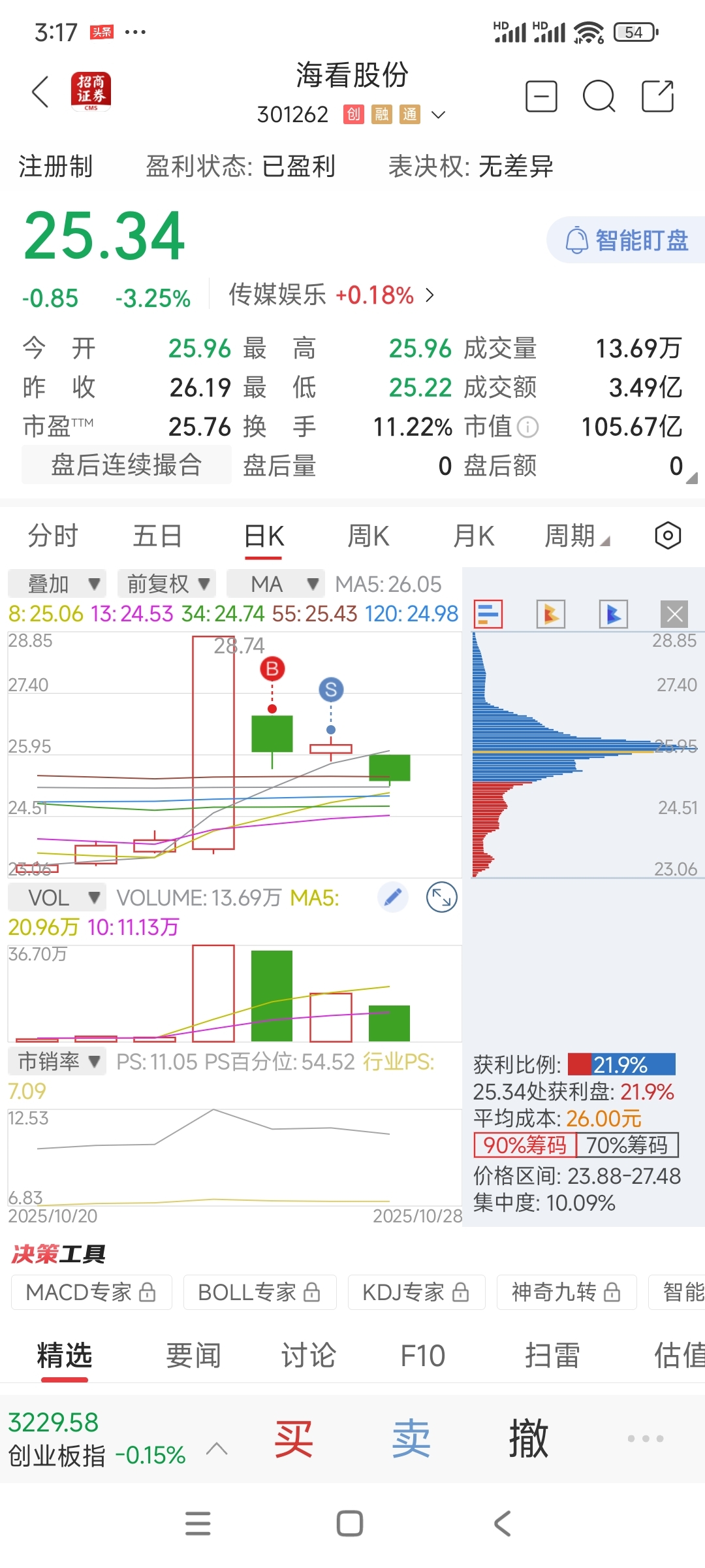 $海看股份(SZ301262)$ 不要怕,还有机会出来,放心